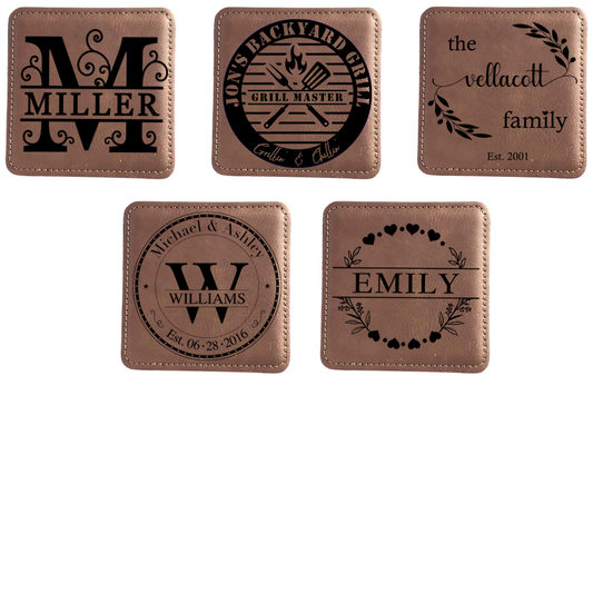 Personalized Square Leather Coaster with Holder (Set of 6)