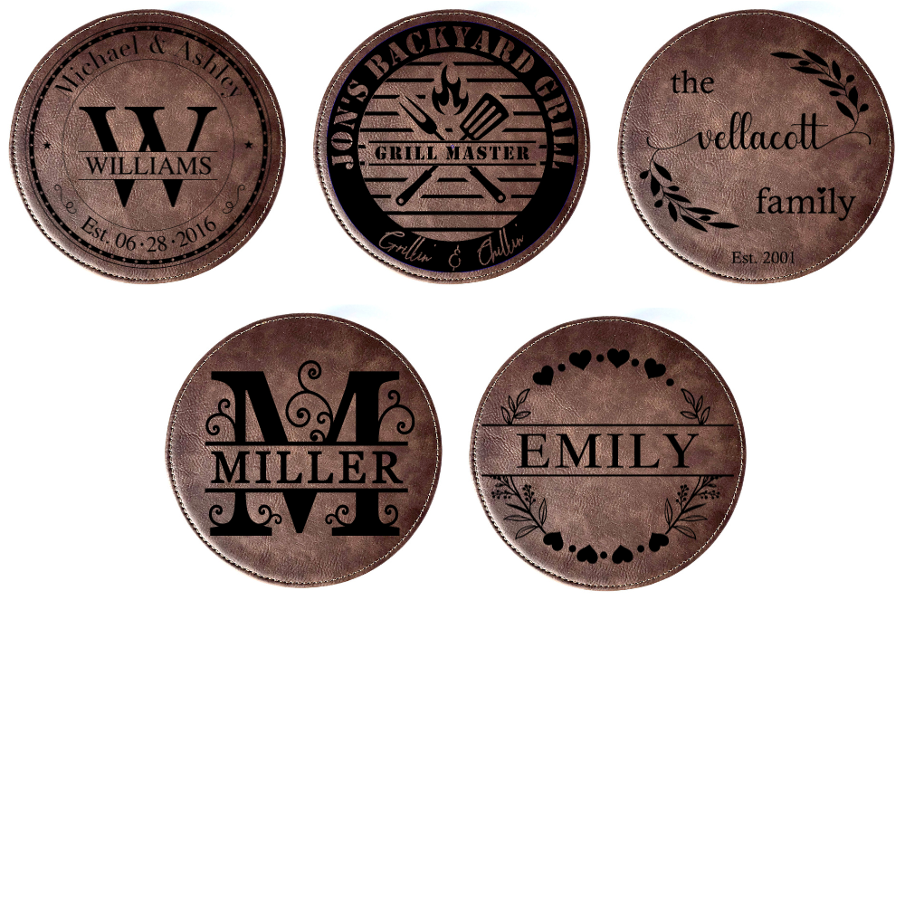 Introducing our Leather Wine Bottle Opener Set, a luxurious and functional collection of four essential pieces for wine enthusiasts. Measuring a generous 6 3/4" in diameter x 2 1/2" deep, it includes a waiter's corkscrew, bottle stopper, aerator, and a drip stop ring. The set is crafted with precision and style, featuring premium animal friendly faux leather in four elegant colors: Black, Buckskin, Chestnut, and Bay Brown. Personalize it with one of our stylish designs and customize it to make a truly unique item. Compact and easy to store, this set is perfect for home and travel. Elevate your wine experience with this exquisite set that combines functionality and sophistication.